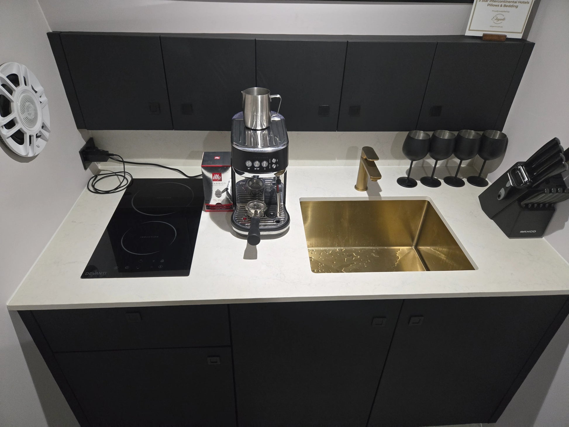 ● Fully equipped kitchen with 85L fridge, duel burner induction cooktop, Breville coffee machine